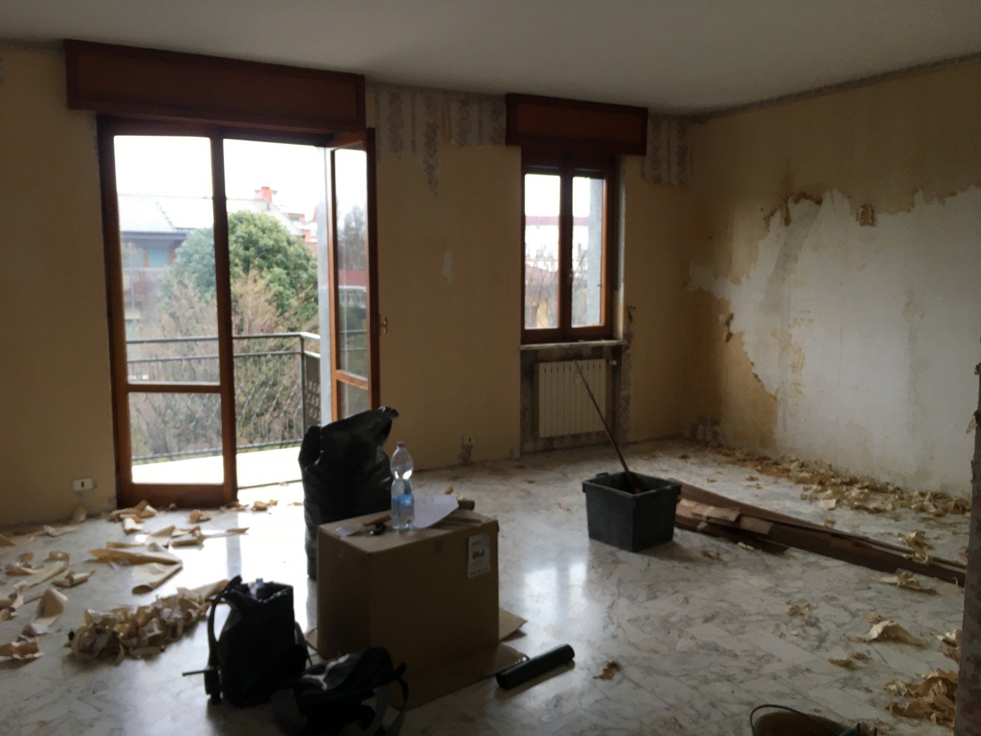 Prima e dopo sostituzione serramenti levigatura parquet e marmi chiusura delle sopra luci posa di porte interne battenti e posa porta blindata.